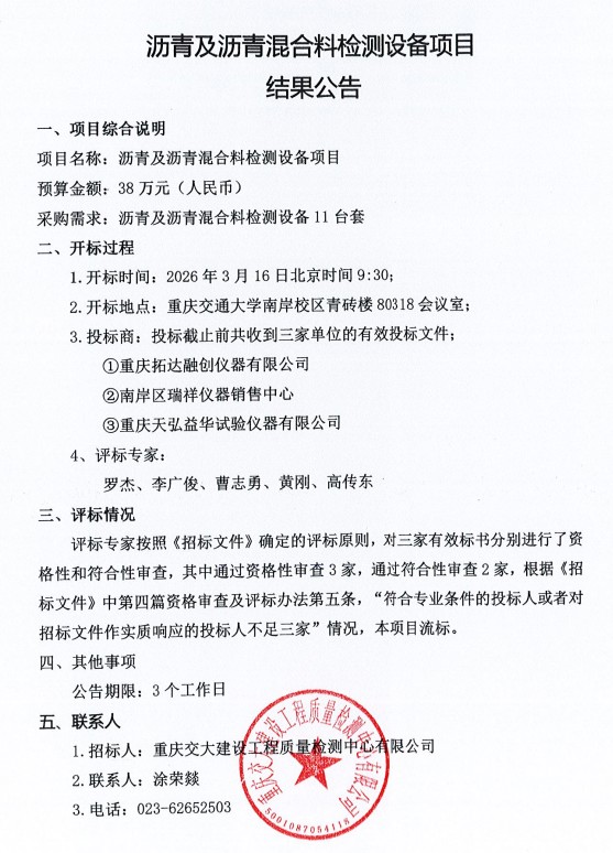 瀝青及瀝青混合料檢測(cè)設(shè)備項(xiàng)目結(jié)果公告